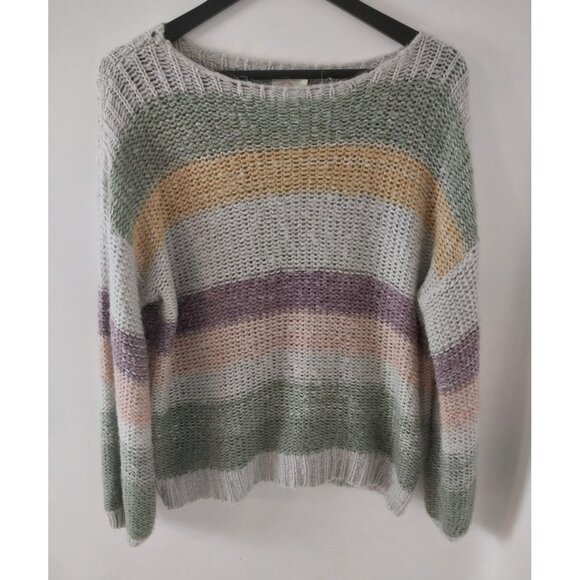Grace & Emma Cotton Blend Striped Knit Sweater Shirt Sz L