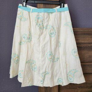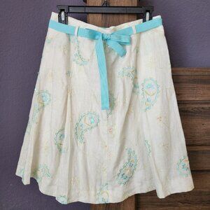 Grace Essentials 100% Linen Skirt Paisley l Embroidery Women's Size 8