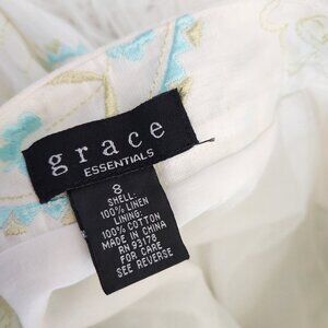 Grace Essentials 100% Linen Skirt Paisley Embroidery Women's Size 8