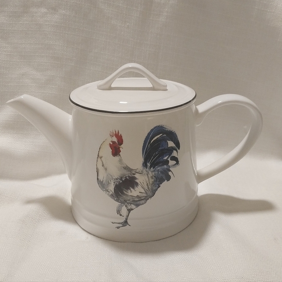 Grace Fine Ceramic, white, rooster design, large teapot.