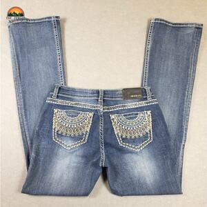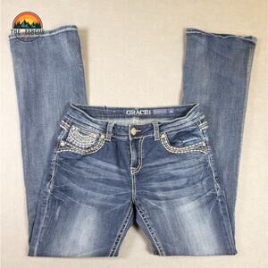Grace In L.A. Bootcut Jeans Medium Wash Denim Embellished Pockets Women's Sz 31