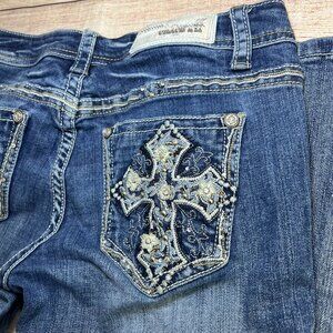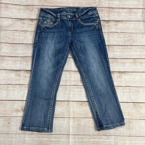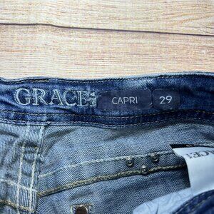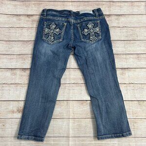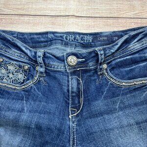 Grace In LA Capri Jeans Size 29 Embellished Cross Pockets Rhinestone Bling