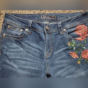 Excellent condition ladies Grace in LA Easy fit boot jeans. Super cute rose embroidery accents.