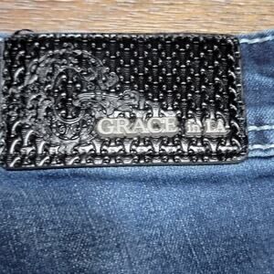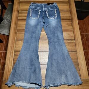 Grace In LA High Waist Denim Jeans w/ Raw Hem Bell Bottoms & Bling - Size 28. Excellent condition. Comes from a smoke free home.