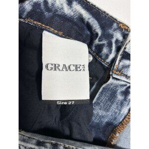 Grace In LA High Waist Patchwork Flare Jeans Size 27 Blue Denim