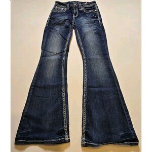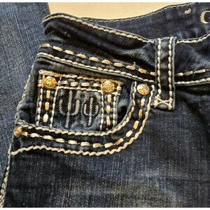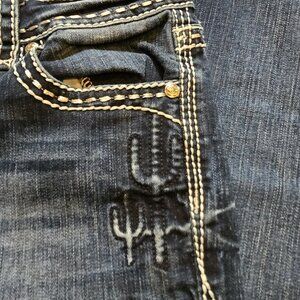 Grace In LA Jeans Easy Fit 25 Embroidered Western Cactus Boot Cut Denim Dark Pip