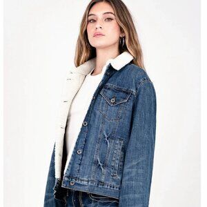 Grace In LA SZ L Denim jean jacket Sherpa Essential Western Timeless Streetwear Ranch