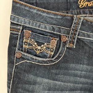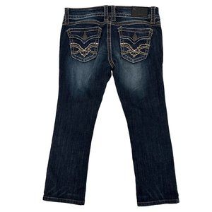 Grace In LA Womens Blue Bling Flap Pocket Low Rise Cropped Straight Leg Jeans 30