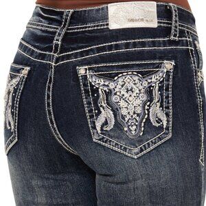 Grace In LA Womens Bootcut Jeans Size 29 x 34 Sequin Western Embroidered NWT