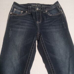 Grace In LA Women's Easy Fit Embellished Sequined Jeans Size 27