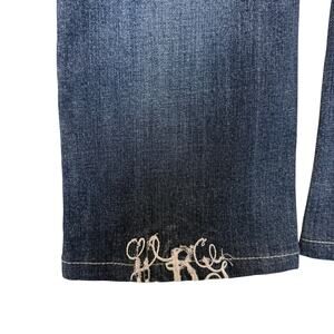 Grace In La Jeans Womens 7/27 Blue Denim Stretch Beaded 5-Pockets Boot Cut Leg.