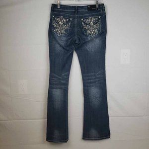 Grace In La Women's Boot Cut Jeans Blue Stretch Embellished Stone Wash Denim 9