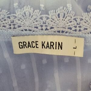 Grace Karin Baby Blue Longsleeve Thin Blouse Large