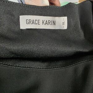 Grace Karin Black Floral Chiffon Blouse Size XL