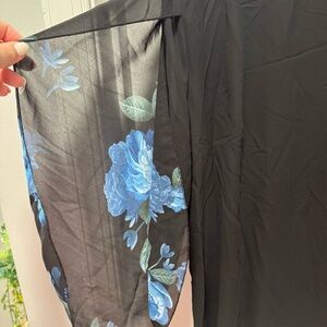 Grace Karin Black Floral Chiffon Dress NWT size 22W Split Sleeve Blue Flowers