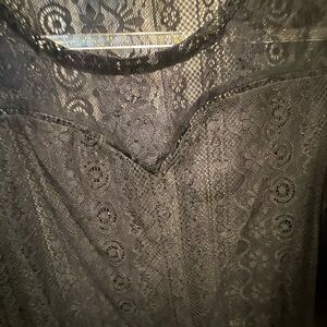 Grace Karin Black Lace Sheer Long Sleeve Blouse size XL