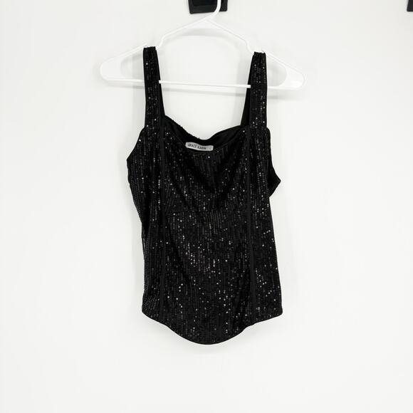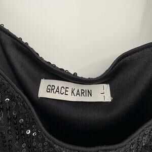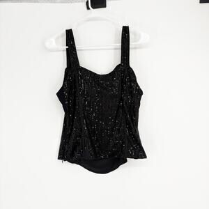 Grace Karin Black Sequin Tank Top Size Large Party y2k New Years