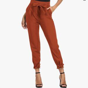 Grace Karin Burnt Orange Work High-Waist Trousers. Elastic waist with fabric tie. Bow ties also at the ankles. Great work pants or for a special occasion. Such a classic pant that can be used for many years. Retails $48 (no longer available online).