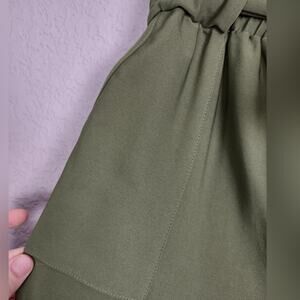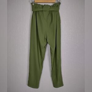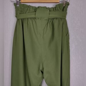 Grace Karin Cropped High Waisted Cropped Paper Bag Pants Size L Khaki Green
