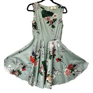 Grace Karin Dress Womens Medium Sage Green Floral Swing Retro Party