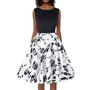 Grace Karin Dress Womens Small Black White Floral Fit & Flare Retro Tea Dress