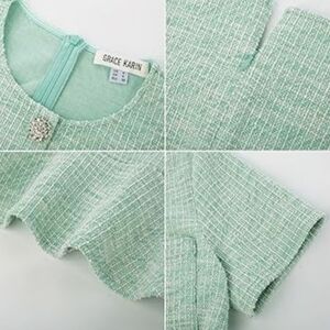 FABRIC and SIZE Guide: This tweed dress is crafted from tweeed and metallic wire, combining the unique texture of tweed with the shimmer of the wire, making the fabric shiny, creating a rich layering and visual effect. The Women's Dress Size Runs Slightly Small,Please choose One Size Up if you want a more relaxed feeling