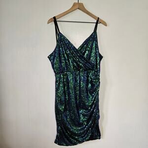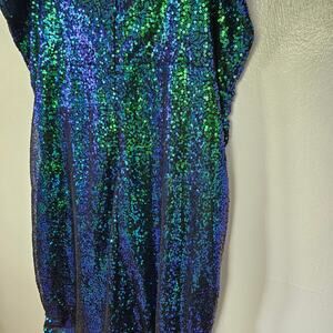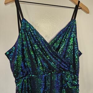 Dazzle in this Grace Karin dress. Features vibrant green and blue sequins. Ideal for prom or special events.