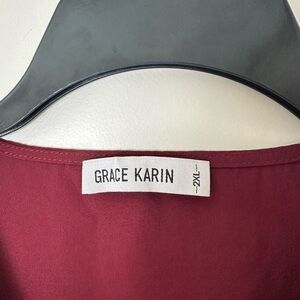 Grace Karin Long Balloon Sleeve Midi Length Dress Size 2XL Burgundy