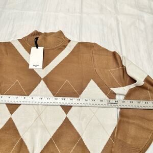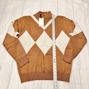 Grace Karin Men High Neck Sweater Long Sleeve Brown Sweater size S