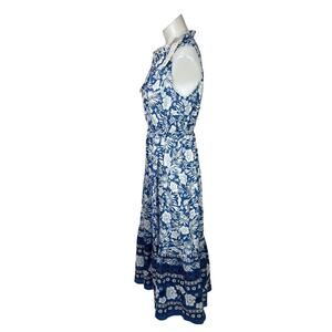 Grace Karin NWT Blue Tropical Floral Sleeveless Ruffle Neck Maxi Dress Size S