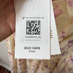 Grace Karin NWT Cream And Pink Midi Dress 2XL