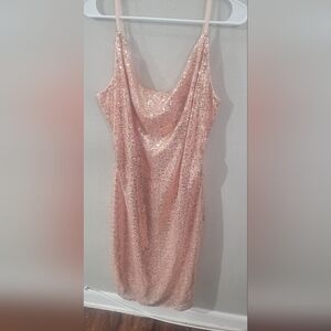 Grace Karin One Shoulder Sequin Dress in Rose Gold