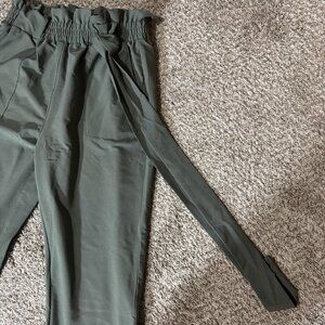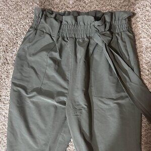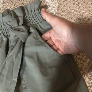 Grace Karin Pants Womens Medium Green Paperbag Waist Tie Belt High Rise Pockets