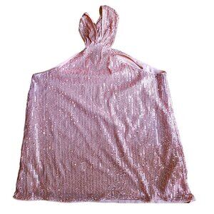 Grace Karin Peachy Pink Keyhole Halter Glitter Sequin Top