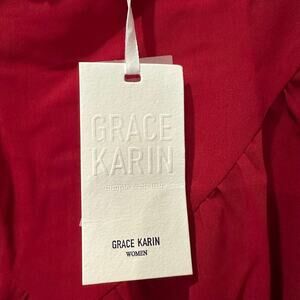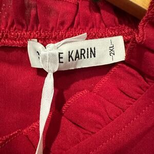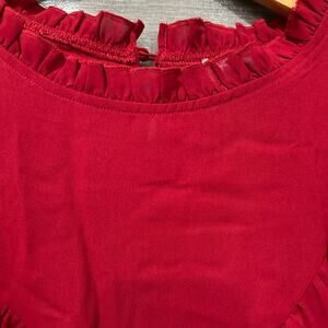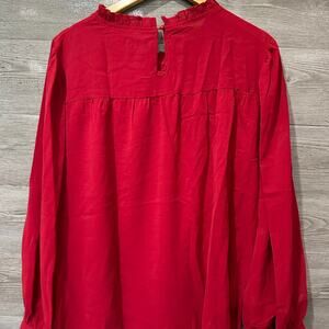 Elegant red blouse with ruffle details. Long sleeves. Perfect for any occasion.