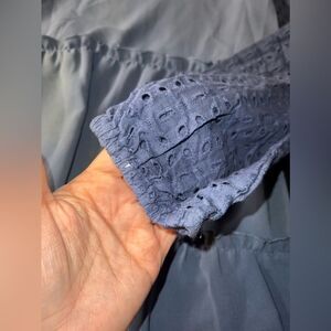 Grace Karin Slate Blue Top Long Sleeve V Neck Eyelet Lace Tiered Top Sz S NWT