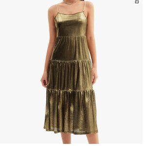 Grace Karin Spaghetti Strap Ruffle Midi Dress in Gold
