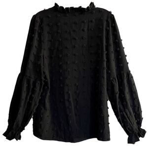 Grace Karin Swiss Dot Blouse Women’s Size Small Black Long Sleeve Ruffle…