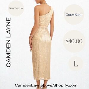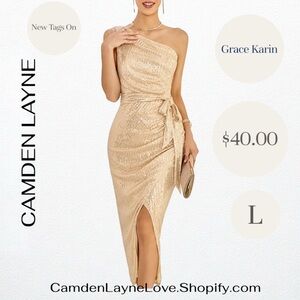 This stunning Grace Karin dress is designed for cocktail occasions, featuring a chic one-shoulder neckline and elegant ruched detailing. The tan color enhances its sophisticated appeal, while the sleek sheath silhouette and side slit add a touch of modern allure.