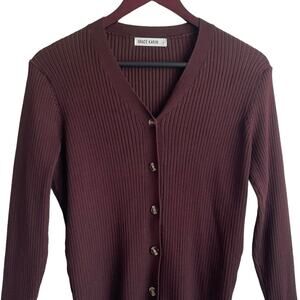 Grace Karin Women Cardigan Sweater L Brown Ribbed Fitted Preppy Academia Office