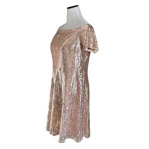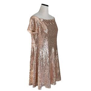 Perfect for the upcoming holidays, birthdays, celebrations, etc! Women’s plus-size sequin party dress in a dusty rose color. Can be worn as off-the-shoulder. Hits above the knee/mid-thigh depending on height. Size is 2XL.