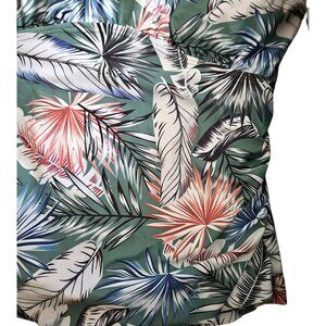 Grace Karin Women's Large Tankini Top is perfect for beach or pool, featuring a tropical floral and leaf pattern. The ruched design in shades of green, white, black, and multi offers tummy control, adjustable and crisscross straps, removable padding, and is fully lined.