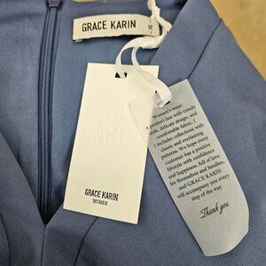 Grace Karin Womens XL Blue Midi Dress Tie Waist & V-Neck Stylish Slit Elegant