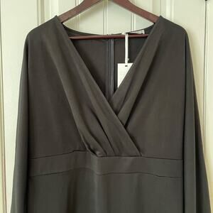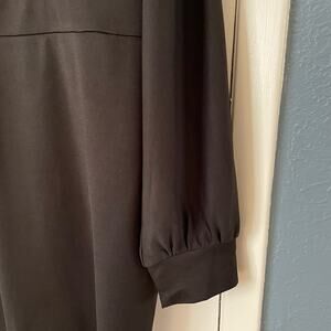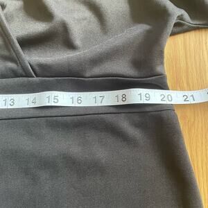 This classic dress has a crossover chest with pleating, pencil skirt, and cuffed sleeves. The material has a good weight and stretch to it. There are loops for a belt, but the belt did not come with it.