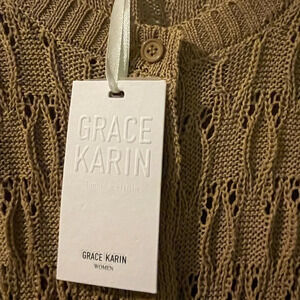 NWT and no defects. Size 2XL beige button up sweater by Grace Karin. Super soft and stretchy. Lightweight. Armpit to armpit 21” and center back length is 24 1/2”. Tote 6.