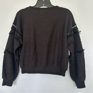 Grace + Karma Black Fringe Cut Out Textured Sweatshirt.