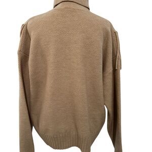 Grace + Karma Tan Turtleneck Sweater with Fringe Detail