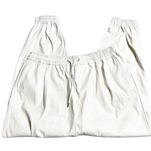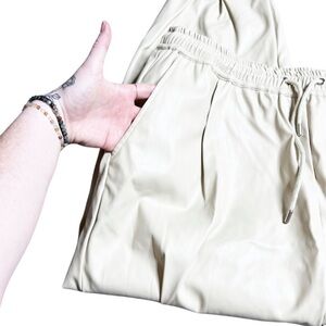 Grace + Karma Women’s Beige Cream Faux Leather High Waisted Tie Jogger Pants