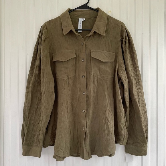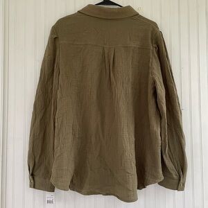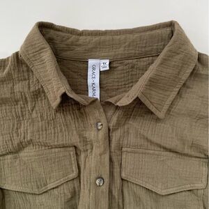 Grace + Karma Women's Olive Green Double Gauze Button Down Shirt Size 1X, NWT