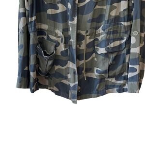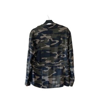 Camo cool meets functional style with this Grace & Lace utility jacket. A rugged yet chic essential, this jacket effortlessly elevates your everyday look with its classic camouflage print and relaxed silhouette. It features a full zip and button-down front, four roomy pockets, and adjustable drawstring waist for a flattering fit. The collared neckline adds a touch of sophistication, while the versatile design allows for easy layering. Whether you're strolling through the city streets, heading to a casual brunch, or embarking on an outdoor adventure, this jacket will keep you comfortable and stylish. Great pre-owned condition.